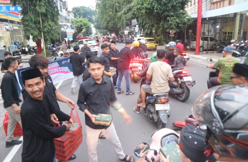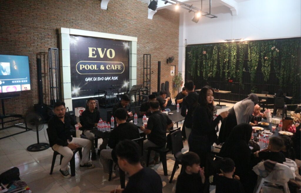 Sejak sore hari, suasana di sekitar Evo Pool & Cafe tampak ramai. Para anggota Evolution Fams bersama tim turun langsung ke jalan membagikan takjil kepada para pengendara dan warga yang melintas.