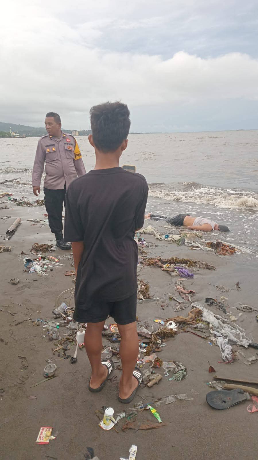 Ia kemudian melihat sosok tubuh laki-laki dalam posisi tengkurap di bibir pantai. Saksi segera melapor kepada Bustam alias Cambang (39) yang sedang beristirahat di gardu dekat lokasi.
